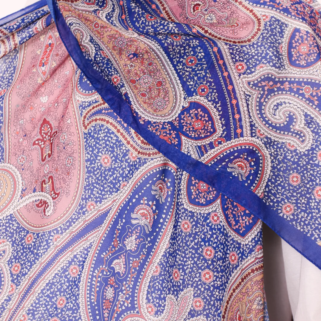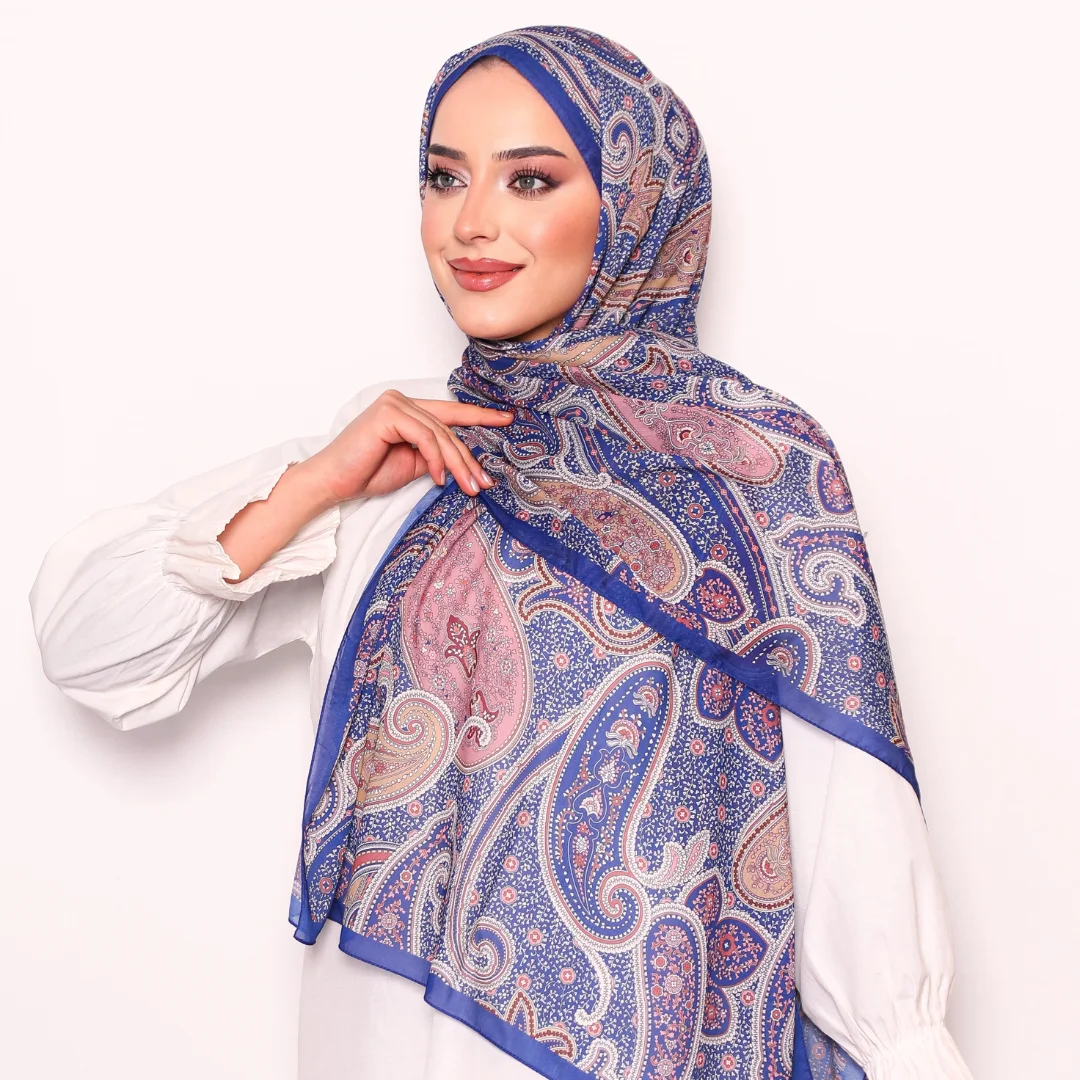 Modal İpek Pamuk Etnik Desen Şal – Açık Lacivert