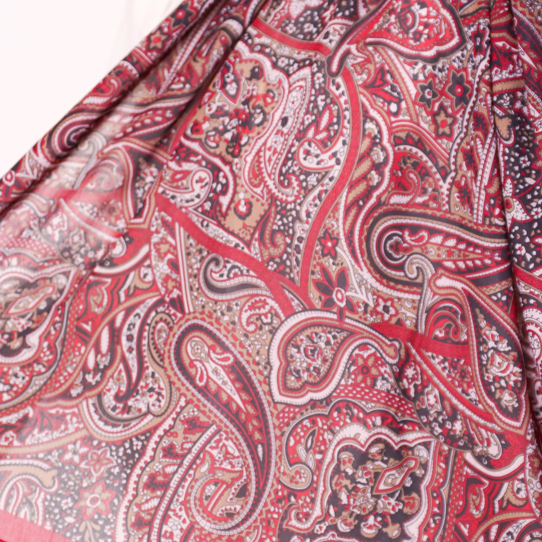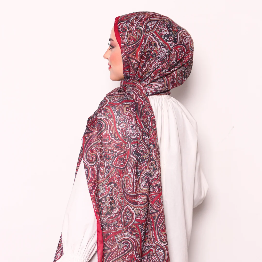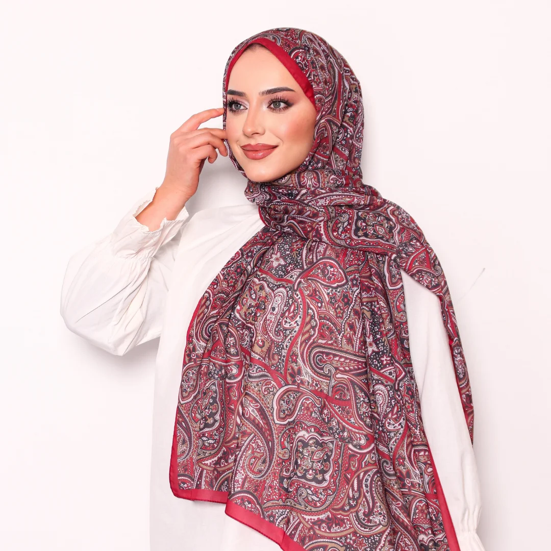 Modal İpek Pamuk Etnik Desen Şal – Bordo Siyah